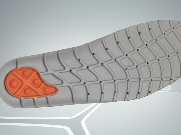 El secreto es un sistema de agujeros y canales, siempre libres e integrados en una plantilla ergonómica que eleva el pie por encima de la suela y distribuye el peso corporal de forma homogénea.