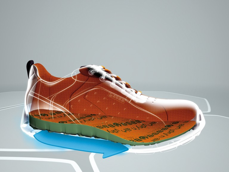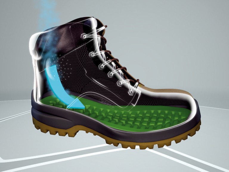 Al andar, la presión sobre el talón empuja el aire hacia delante, eliminando la humedad.